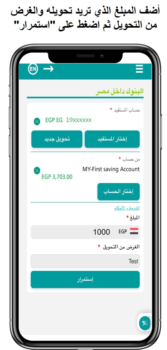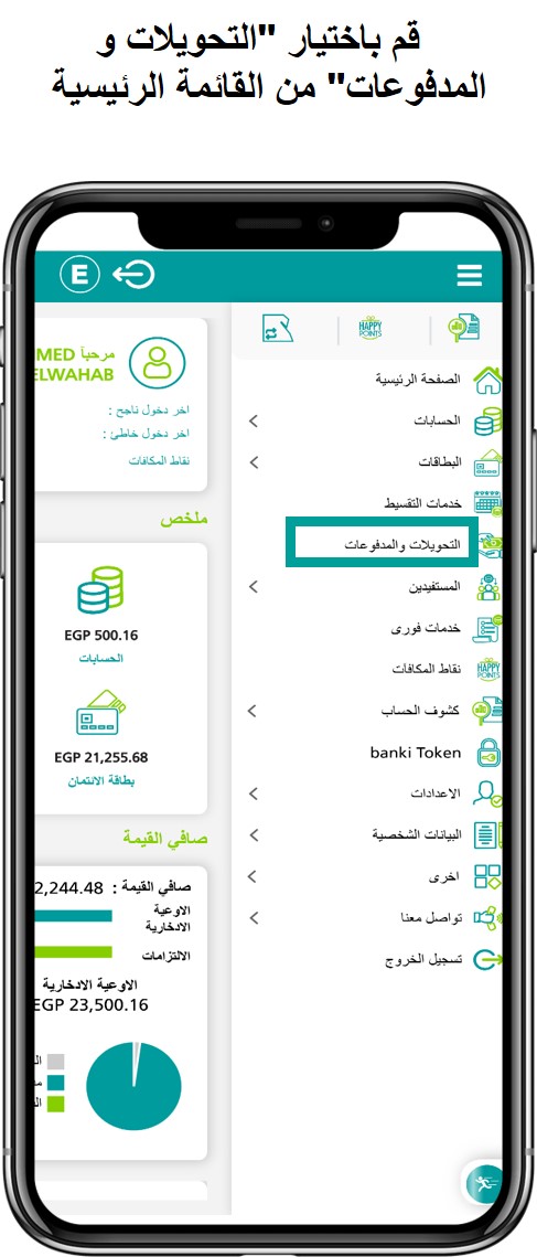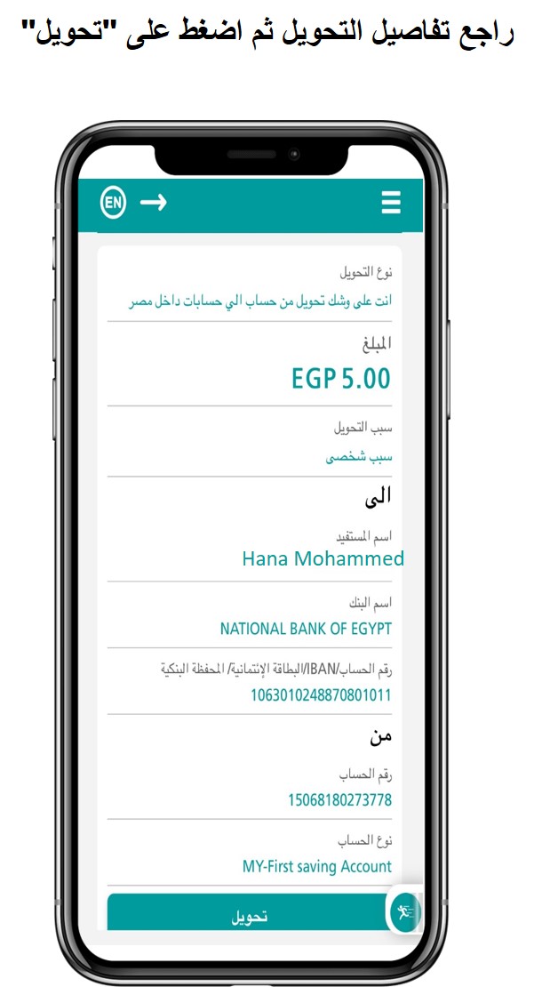 • حول إلى أي حساب / IBAN في مصر باستخدام banki Mobile