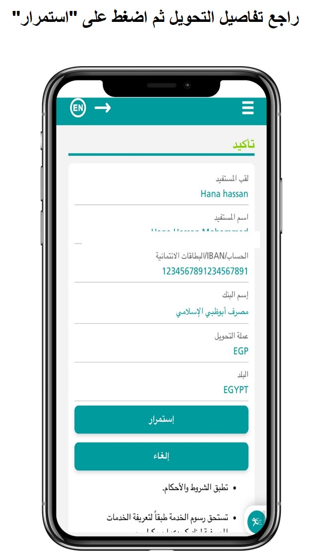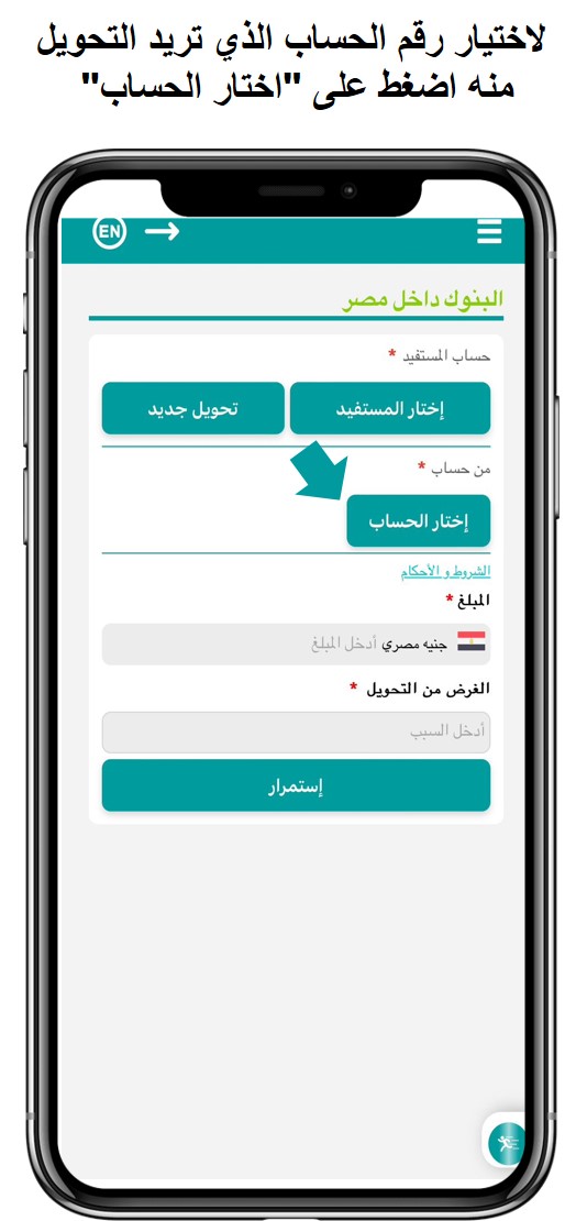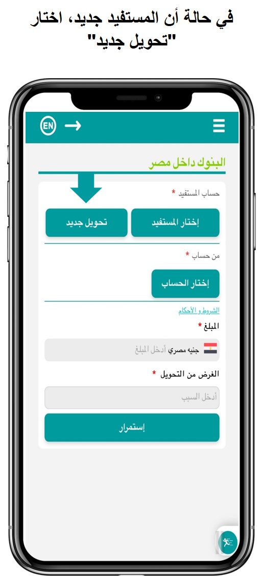 خطوات التحويل إلى حساب / IBAN داخل مصر: