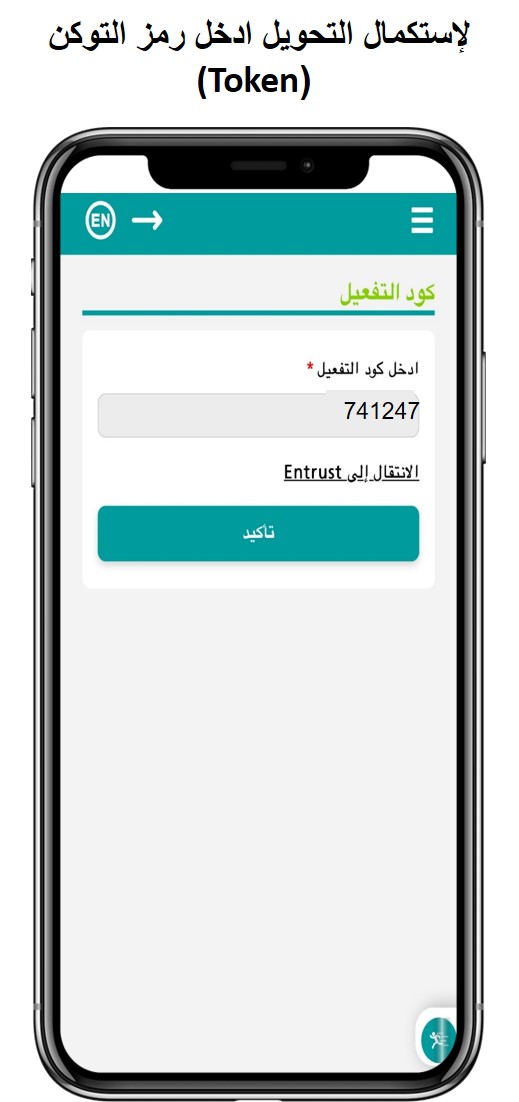 9. أدخل “رمز الأمان Token ” واضغط على “تأكيد”