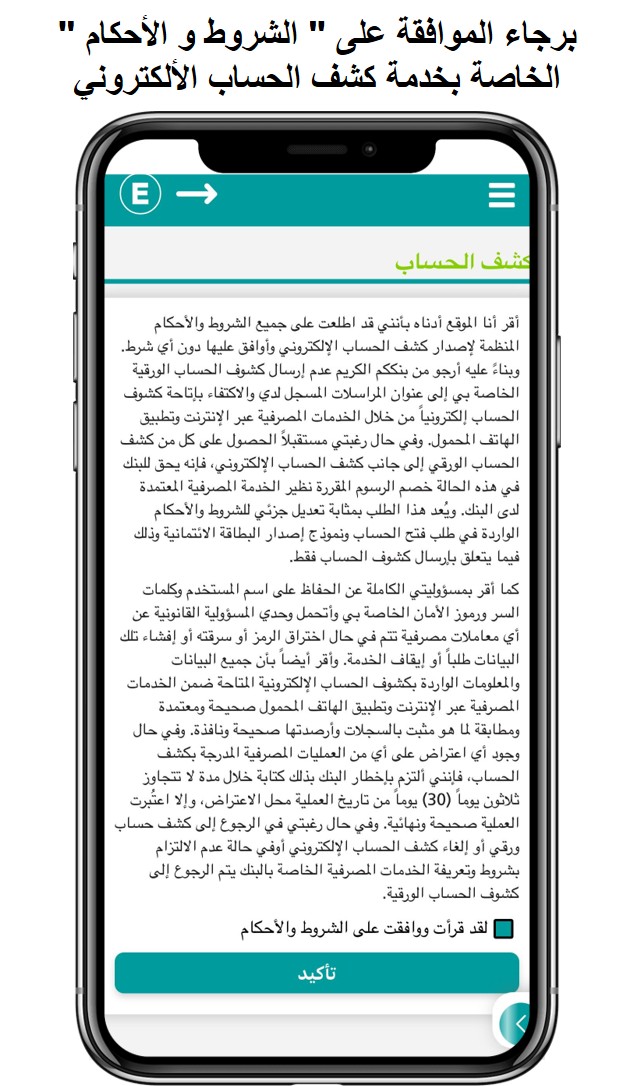 • أختر رقم الحساب لمراجعة أخر 50 معاملة تمت على هذا الحساب