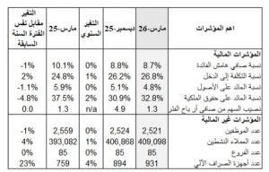 أهم النتائج المالية والمؤشرات الرئيسية لأنشطة الأعمال