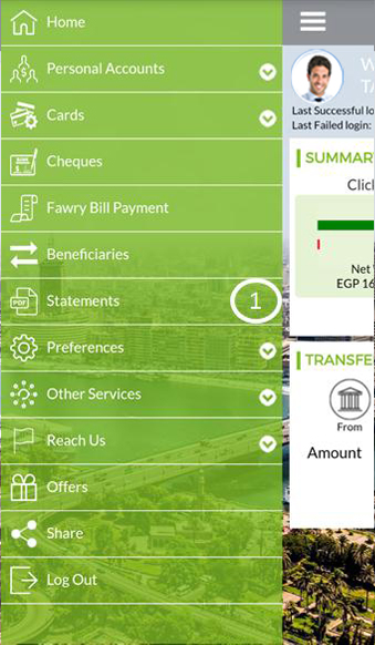 Steps to transfer to other Accounts/IBAN in other banks inside Egypt: