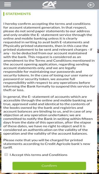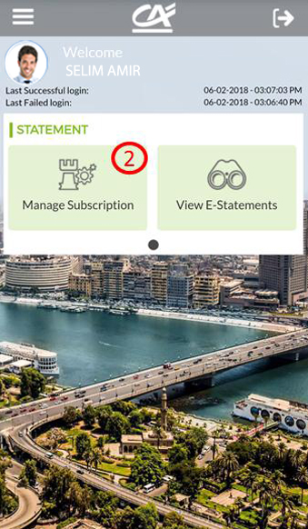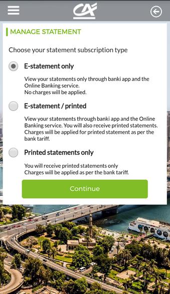 - Choose Statement > Manage Subscription and the available options will be displayed: E-statement only, E-Statement/Printed or Printed Statement only. After chosen the suitable mode, please accept the terms and conditions to apply the requested service.